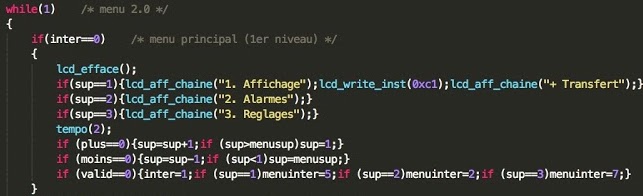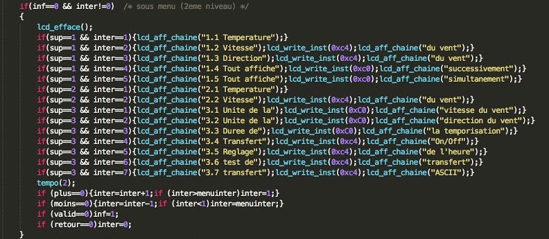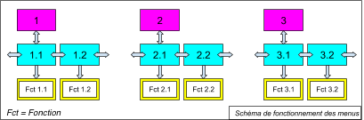 Les menus se composent de 3 parties : le menu principale, les sous-menus, et les appels des fonctions souhaitées.